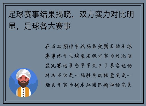 在万众期待中,这场备受瞩目的足球赛事终于...