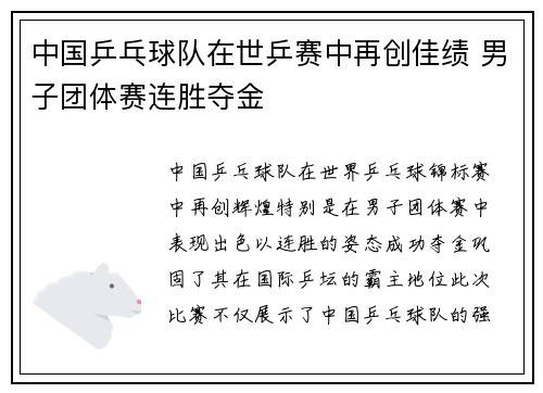 中国乒乓球队在世界乒乓球锦标赛中再创辉煌...