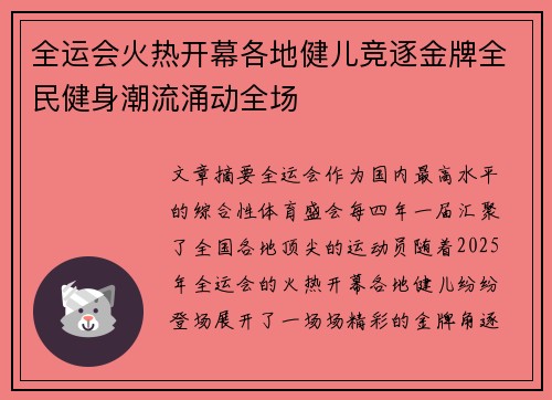 文章摘要:全运会作为国内最高水平的综合性...