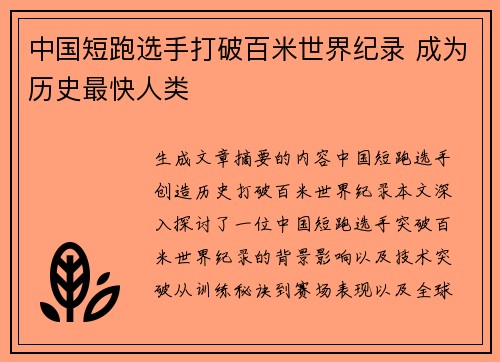 生成文章摘要的内容中国短跑选手创造历史,...