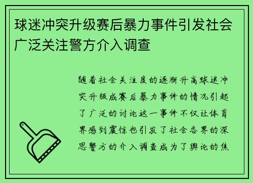 随着社会关注度的逐渐升高,球迷冲突升级成...
