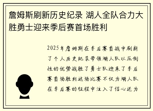 2025年,詹姆斯在季后赛首战中刷新了个...