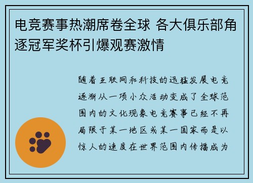 随着互联网和科技的迅猛发展,电竞逐渐从一...