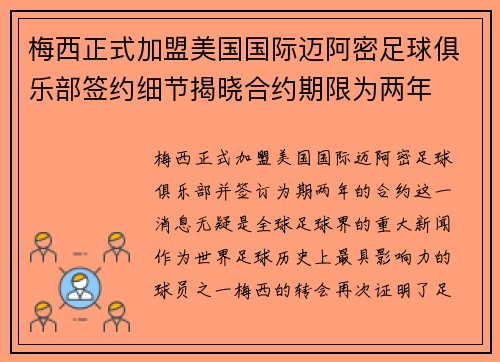 梅西正式加盟美国国际迈阿密足球俱乐部并签...