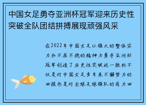 在2022年,中国女足以强大的整体实力和...