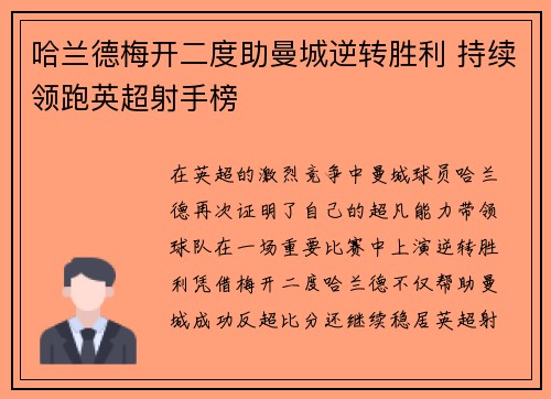 在英超的激烈竞争中,曼城球员哈兰德再次证...