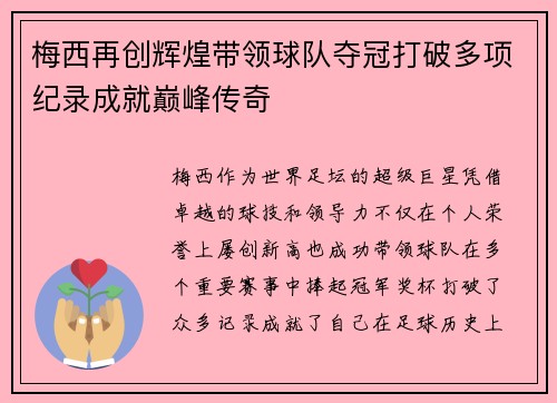 梅西,作为世界足坛的超级巨星,凭借卓越的...