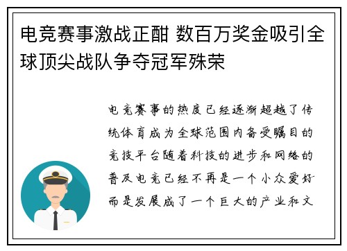 电竞赛事的热度已经逐渐超越了传统体育,成...