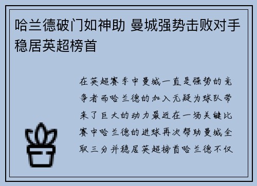 在英超赛季中,曼城一直是强势的竞争者,而...
