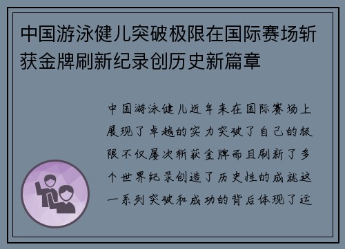 中国游泳健儿近年来在国际赛场上展现了卓越...