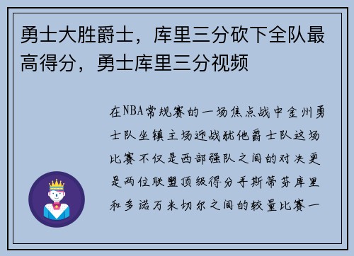 在NBA常规赛的一场焦点战中,金州勇士队...