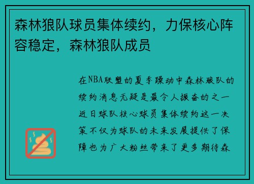 在NBA联盟的夏季躁动中,森林狼队的续约...