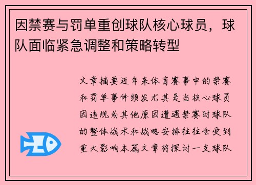 文章摘要:近年来,体育赛事中的禁赛和罚单...